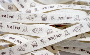 Home » ริบบิ้น :ริ้บบิ้นพิมพ์ : Ribbon Printing Gallery » เทปทอ Cotton พิมพ์ Logo : Woven Cotton Tape/Printing
